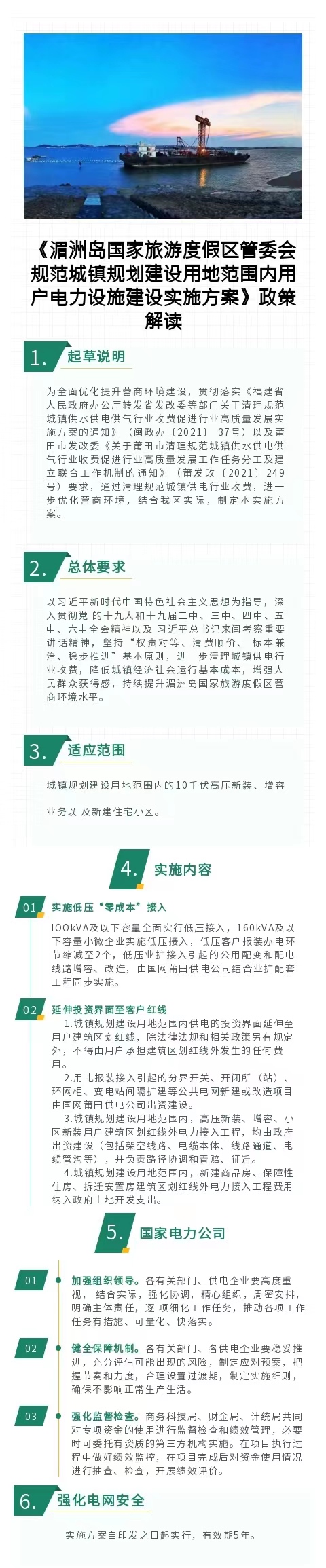 《湄洲岛国家旅游度假区管委会规范城镇规划建设用地范围内用户电力设施建设实施方案》政策解读