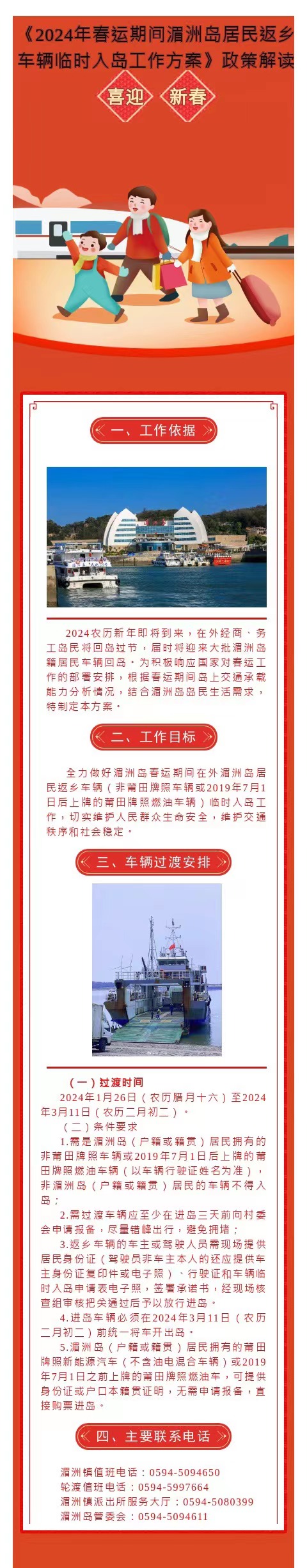 《2024年春运期间湄洲岛居民返乡车辆临时入岛工作方案》政策解读